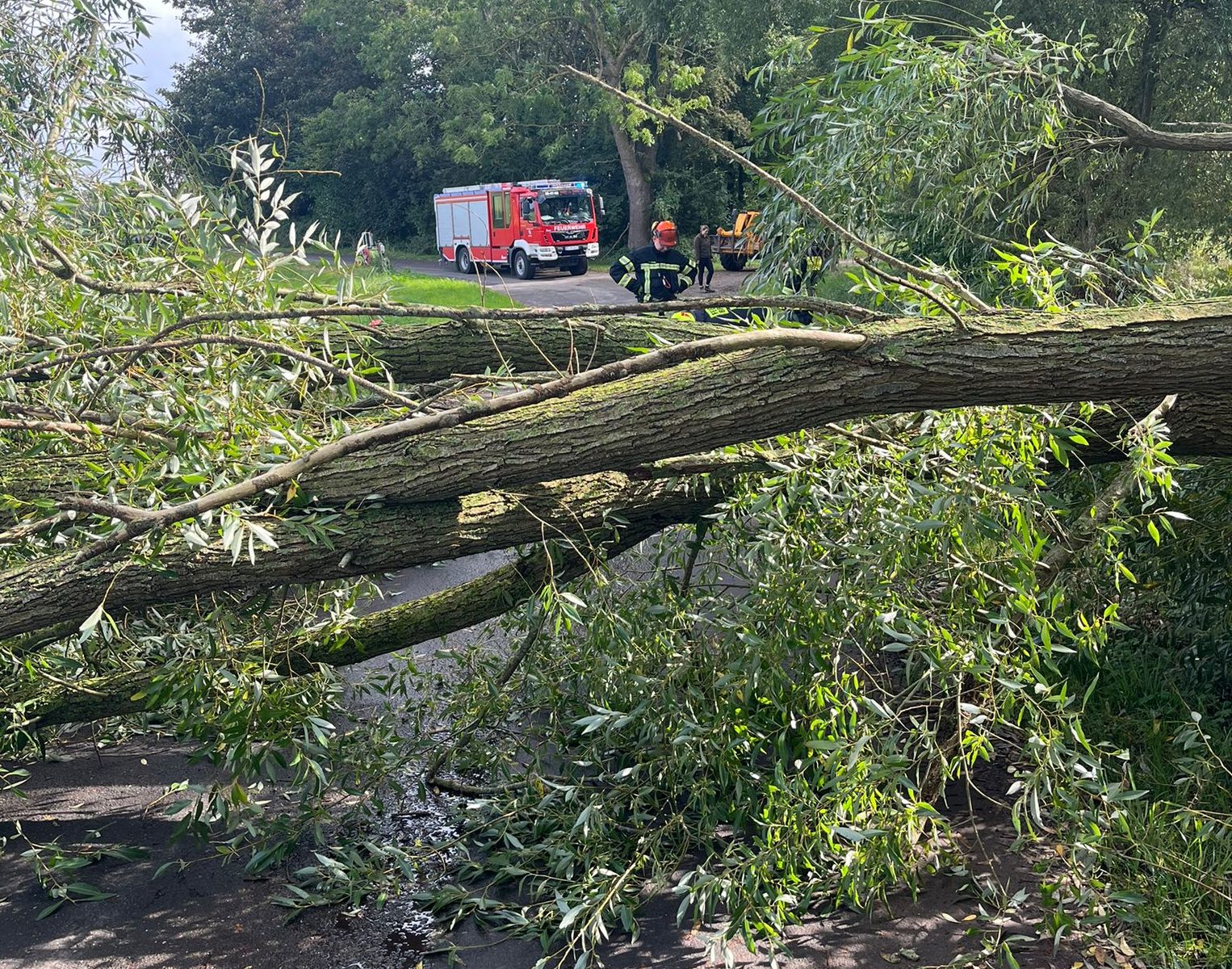 Das bestätigte sich vor Ort. Der Baum wurde von uns mit der Kettensäge zersägt, und von einem Landwirt per Telelader zur Seite geschoben.